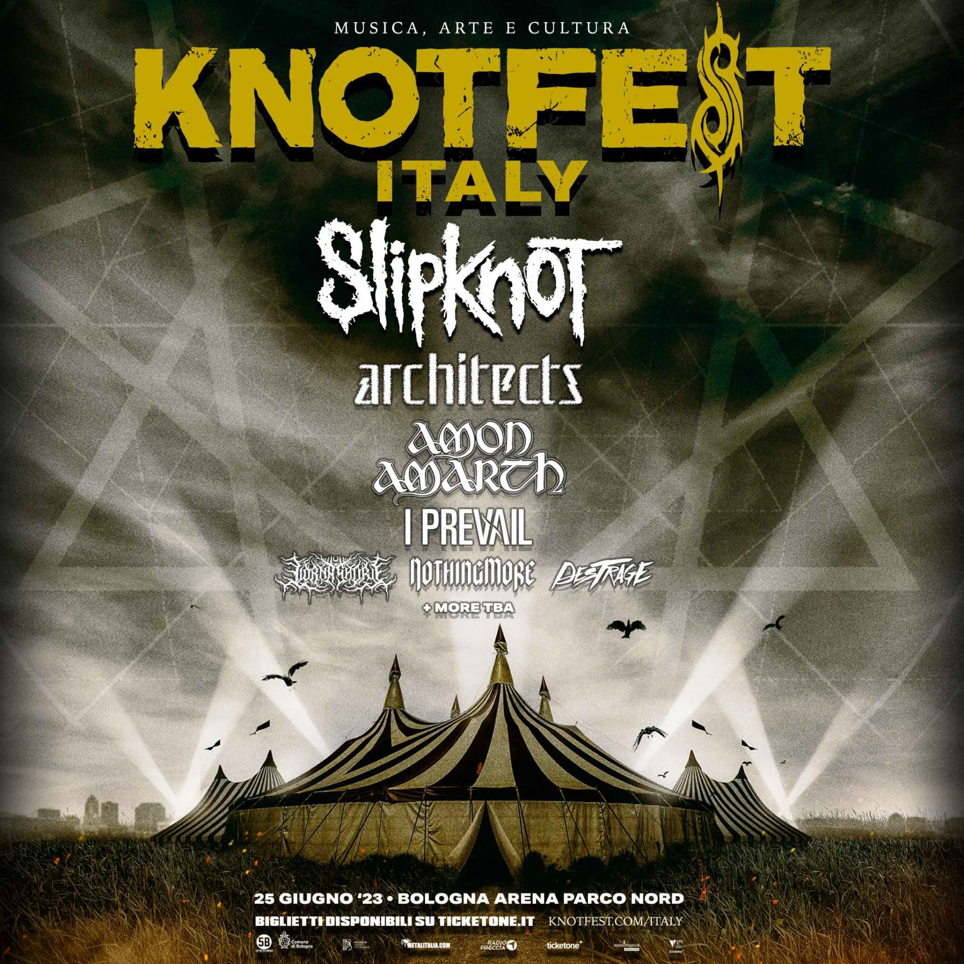 Musica, arte e cultura: KNOTFEST ITALY si svolgerà domenica 25 giugno 2023 all’Arena Parco Nord di Bologna. Per la prima volta in assoluto quindi – dopo Stati Uniti, Giappone, Messico, Colombia, Francia, Germania, Finlandia, Cile, Brasile e Australia – anche il nostro Paese ospiterà il famoso festival itinerante creato dagli SLIPKNOT nel 2012 e divenuto, nel corso degli anni, uno degli appuntamenti più rilevanti al mondo.